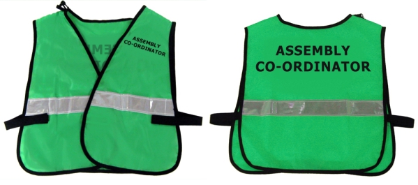 Individually labeled and reflective vests will help all facility emergency and supervisory personnel command immediate authority in the event of a fire or other disaster. Personnel wearing vests automatically command attention and are easily recognizable as figures of authority, more-so than someone wearing an Identification arm band or Warden hat. These vests are color-coded for easy recognition during an emergency, enabling all employees to quickly and easily identify who is in charge. Vests are one-size-fits-most and may not be exactly as pictured. During an emergency it is handy to have various personnel identify themselves using a clearly visible means.